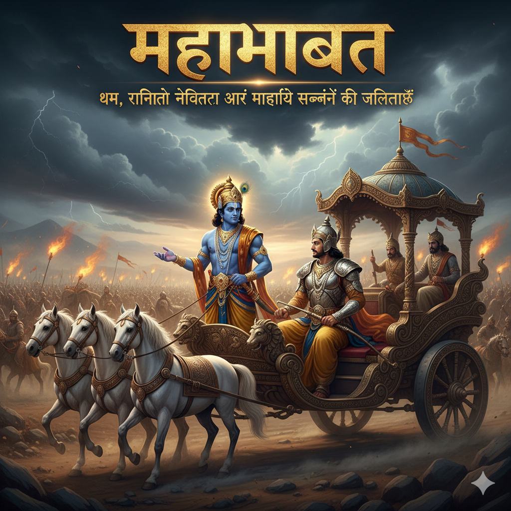 - महाभारत (Mahabharata): यह कौरवों और पांडवों के बीच हुए कुरुक्षेत्र युद्ध की विस्तृत गाथा है। इसमें धर्म, राजनीति, नैतिकता और मानवीय संबंधों की जटिलताएँ समाहित हैं। इसका एक महत्वपूर्ण भाग भगवद गीता है, जो जीवन के गहरे दर्शन को प्रस्तुत करती है।